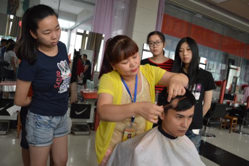 美容美发的体验课,训练营学生们更是充满好奇。美容美发专业老师为训练营学生讲解并演示了发型设计的过程。训练营的留学生体验了美容美发专业的美甲、化妆造型和美容专业。