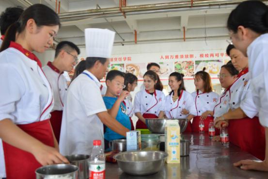 厨师中烹技能实训课上,他们体验与蓝翔技校在校生一样的教学模式。展示厅里孙老师为体验生讲授中烹的技巧,并做菜品演示;接着体验生在实习车间里单人单灶进行实习。在老师的指导下,各位体验生互相品尝并食用自己的菜品。厨师的烘焙课是体验生期待的课程之一。王老师为大家讲解烘焙的基本原理与技巧,并带大家尝试练习。